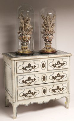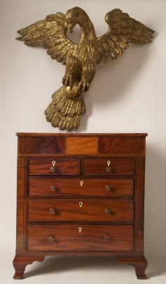 George III Inlaid Mahogany Miniature Chest of Drawers and Carved Giltwood Eagle