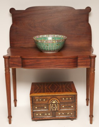 Chinese Export Punch Bowl, Federal Games Table & Indo-Portuguese Table Cabinet
