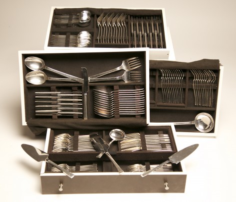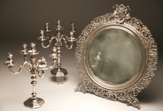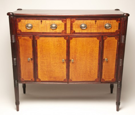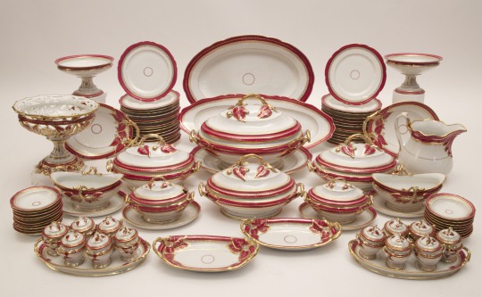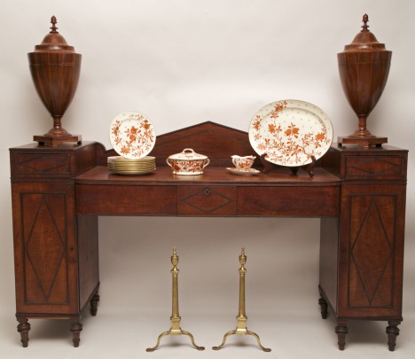 Regency Sideboard, Cutlery Urns, Minton Porcelain & Philadelphia Andirons