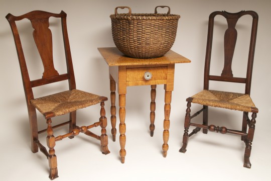 Nantucket Half-Bushel Basket, William & Mary Style Chairs & Sheraton Work Table