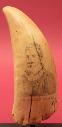 19th Century Sailor Scrimshaw Sperm Whale Tooth With Portrait of Sir Francis Drake