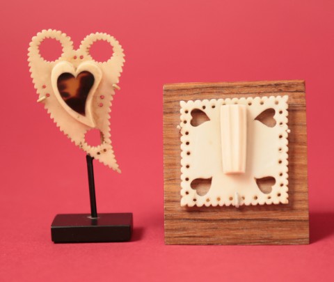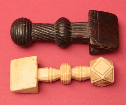 19th Century Carved Exotic Wood Love Token Seam Rubber & Carved Whalebone Seam Rubber
