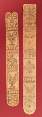 Two 19th Century Sailor Scrimshaw Whalebone Corset Busks