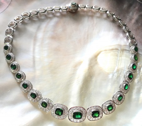 18kt White Gold, Green Tourmaline and Diamond Necklace