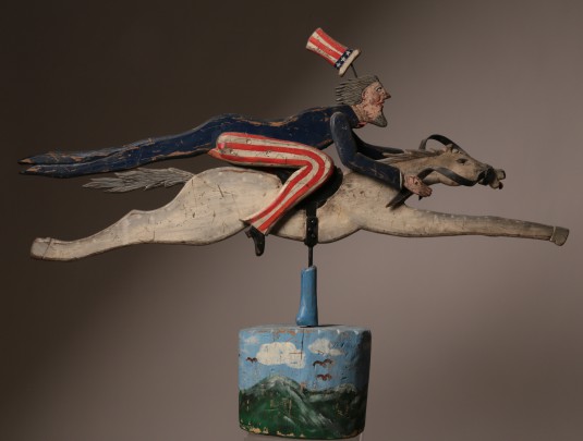 Kent Gutzmer Vintage Outsider Art Carved Wood Figure of Uncle Sam on Horseback