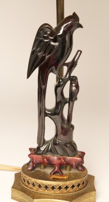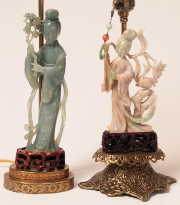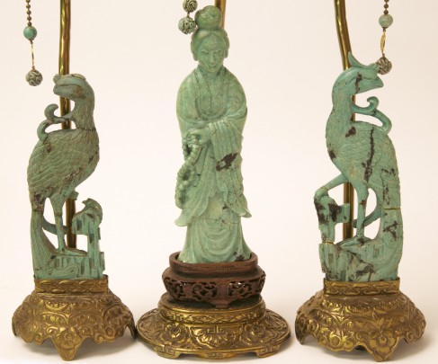 Carved Chinese Egyptian Paste Guanyin Figure and Pair of Phoenixes