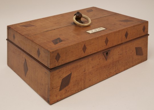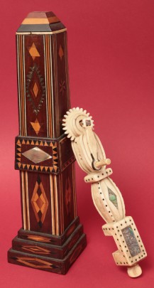 19th Century Exotic Wood Parquetry Obelisk and Sailor Made Whalebone Winder or Ribbon Crimper