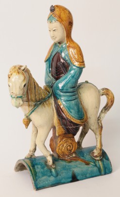 Chinese Polychrome Glazed Equestrian Roof Tile