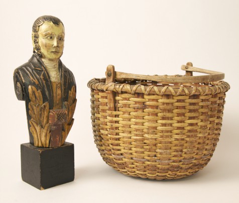 Antique Miniature Figurehead and Rattan Woven Nantucket Basket