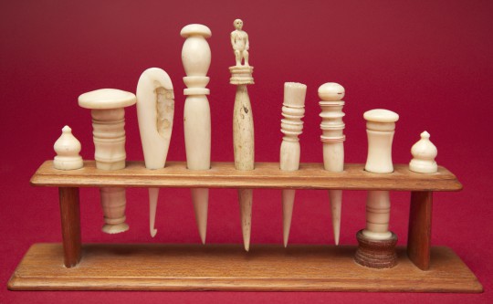 19th Century Nude Female Carved Whalebone Bodkin & Carved Whale Ivory Pie Crimper