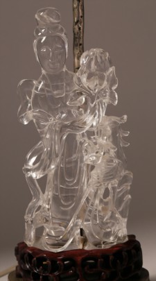 Chinese Carved Clear Colorless Glass Guanyin Figure with Phoenix