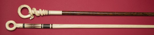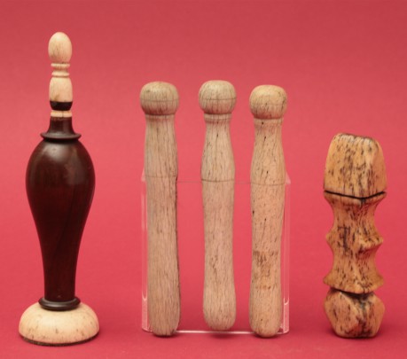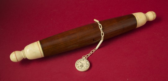 Turned Whale Ivory and Exotic Wood Rolling Pin & Sailor Scrimshaw Ivory Watch Fob
