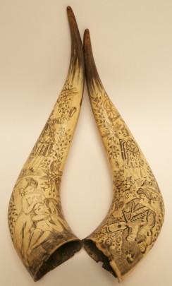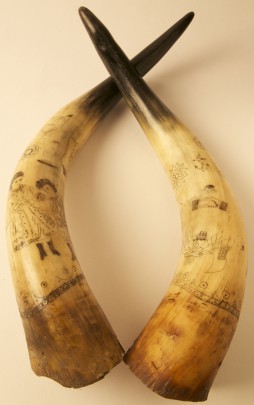 Pair of Rare 19th Century Bifurcated Scrimshaw Whale Teeth