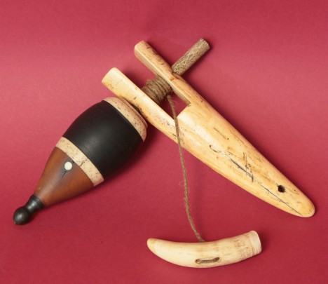 Rare and Perhaps Unique 19th Century Turned Whalebone, Walrus, Ebony and Mahogany Spin Toy