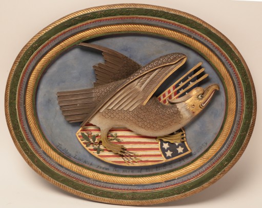 Rare China Trade Carved, Painted and Parcel-Gilt American Eagle Plaque