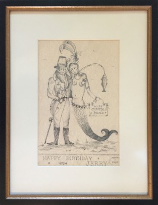 Ralph Eugene Cahoon Jr. Pencil Drawing on Paper “Miss South Bend, Happy Birthday Jerry”