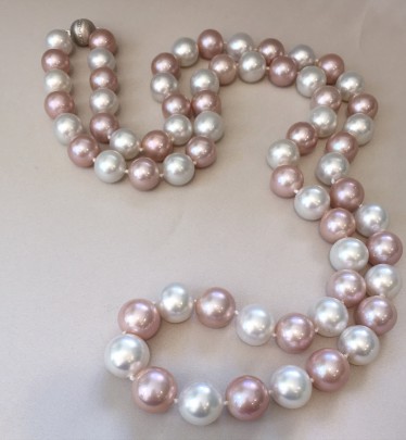 White South Sea and Pink Freshwater Pearl Graduated Necklace