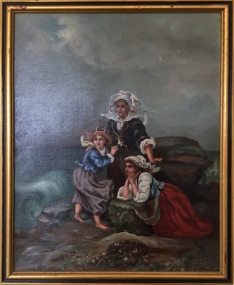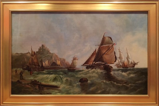 French Oil on Canvas “Busy Coastal Maritime Scene”