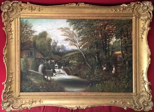 19th C. Oil on Canvas “European Highland River Landscape”