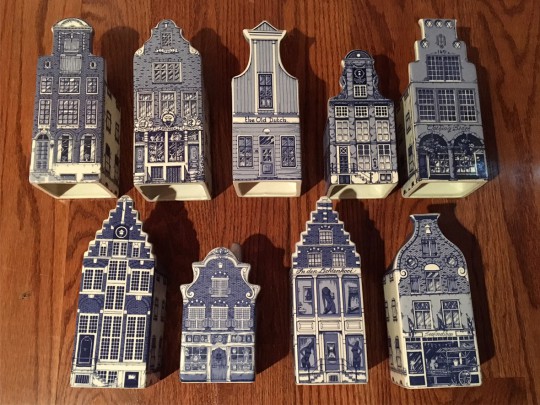 Nine Delft Blue and White Porcelain Miniature Tulip House Vases