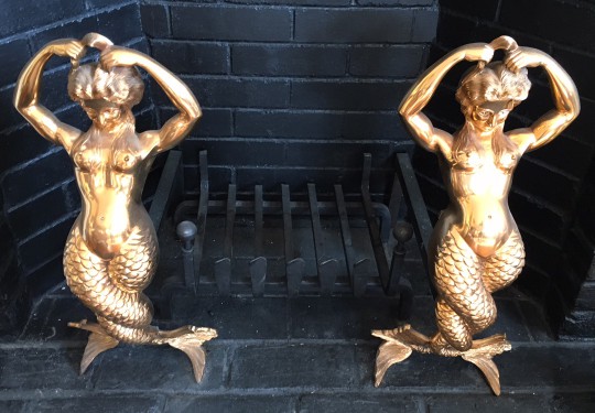 Pair of Unique Brass Mermaid Andirons