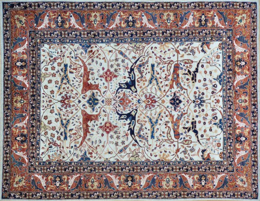 Hand Woven Wool and Silk Persian Design Carpet