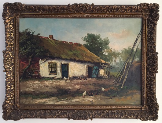 19th Century Oil on Canvas “Chickens in the Barnyard”