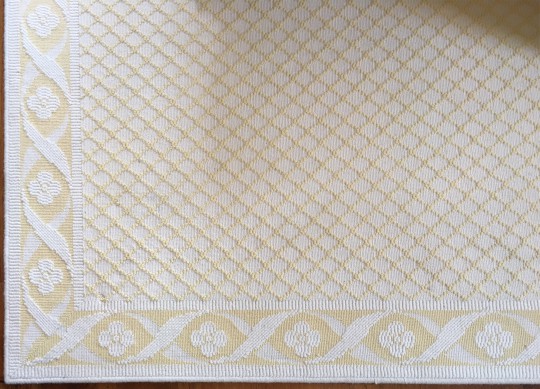 Custom Wilton Yellow and White Geometric Wool Carpet with Floral Border
