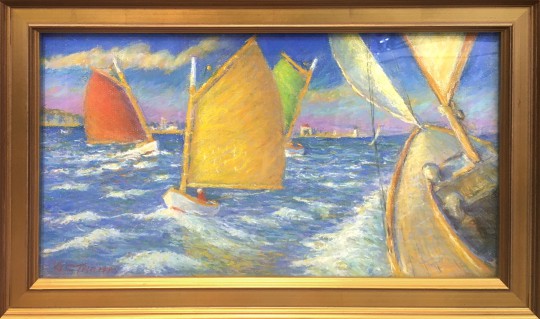 George C. Thomas Pastel on Paper “Race Day: Catboats to Port, Nantucket”