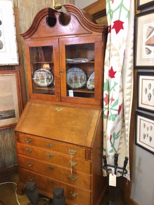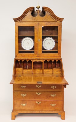 18th C. American Tiger Maple, Cherry and Pine Secretary Bookcase