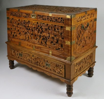 Chinese Export Carved Camphorwood Wedding Chest