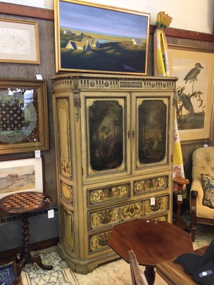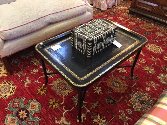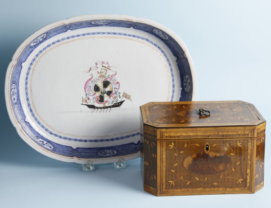 Chinese Export Armorial Oval Platter & George III Sycamore and Marquetry Tea Caddy