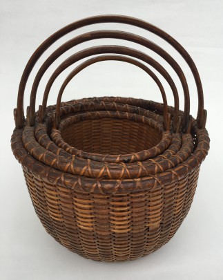 Nest of Four 19th Century Round Swing Handle Nantucket Baskets