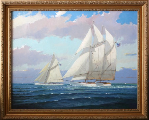 William W. Lowe Oil on Linen “Schooner and Sloop Departing Nantucket”