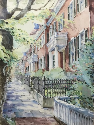 Jane Brewster Reid Watercolor on Paper “Gorham’s Court”