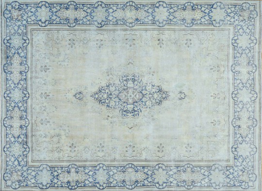 Hand Woven White Wash Wool Kerman Carpet