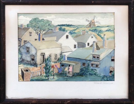 John W. Thompson Watercolor on Paper “View of Nantucket Towards the Old Mill”