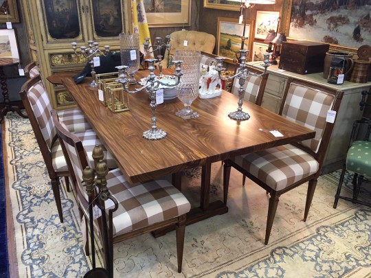 Set of Six Plaid Upholstered Walnut Dining Chairs