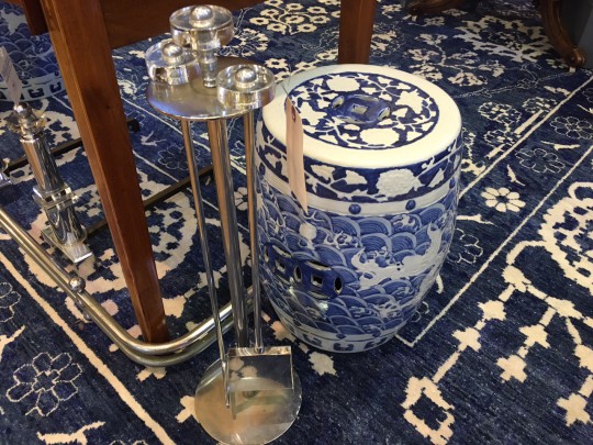 Hand Knotted Wool and Silk Blue and White Tone on Tone Tabriz Carpet