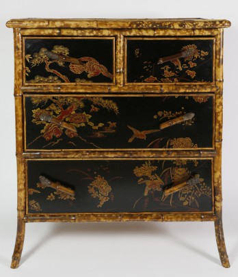 Bamboo and Black Lacquered Chest of Drawers
