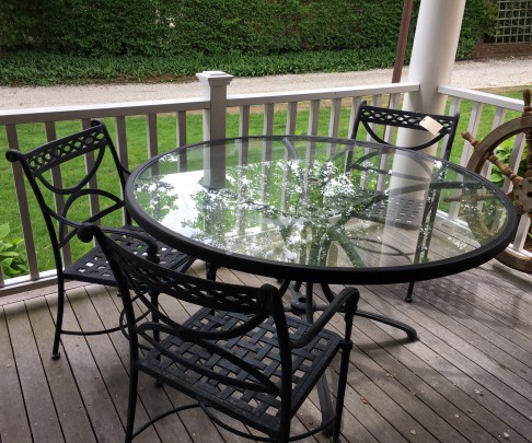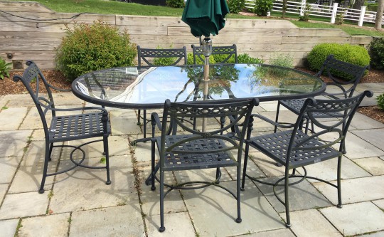 Cast Aluminum Oval Glass Top Dining Table & Six Chairs