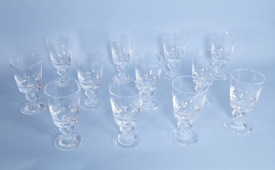 Set of 12 Signed Steuben Clear Crystal Goblets