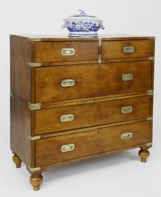 19th Century English Oak and Brass Bound Two-Part Campaign Chest and Canton Covered Tureen