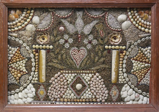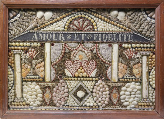 Pair of 19th Century French “Amour et Fidelite” Micro-Shellwork Shadow Boxes
