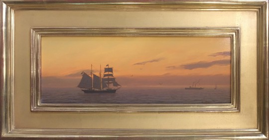 William R. Davis Oil on Panel “Barkentine at Dusk”