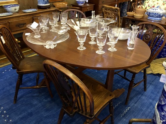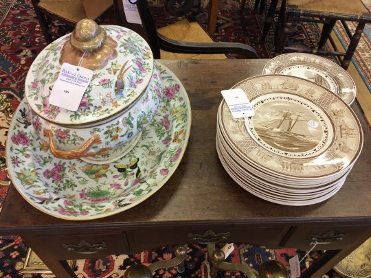 18th C. Drop Leaf Table, 19th C. Low Back Windsor Chair & Chinese Tureen