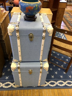 19th Century Campaign Trunk, Mahogany Lap Box & Vintage Brass Submariner’s Bell