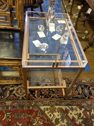 19th C. Cricket Table, Lamp & Bamboo Glazed Door Bookcase