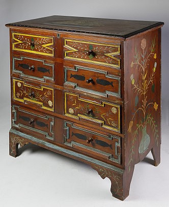 William and Mary Style Whale and Thistle Hand Painted Two-Drawer Blanket Chest