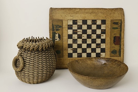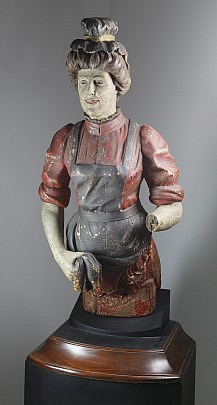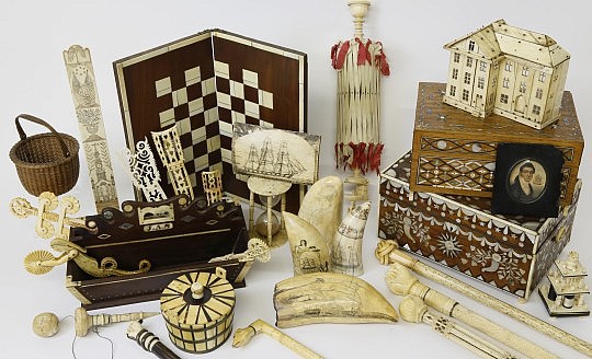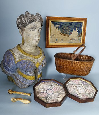 19th c. Carved Figurehead Bust of a Woman, British Sailor Woolwork, Mitchell Ray Nantucket Basket, Love One Sailor’s Valentine and Pie Crimpers